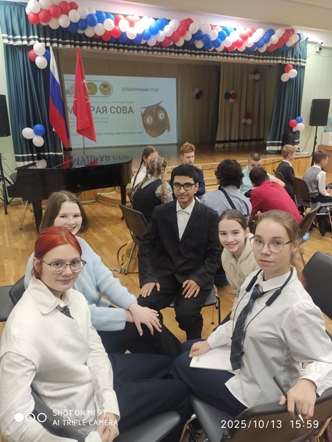 Команда нашей школы «КОТ»: Кира Филиппова (5А), Ирина Ломакина (8А), Софья Феофилактова (8А), Вероника Чурсанова (8А), Владимир Ятагама (9А) — приняла участие в Региональном фестивале по игре «Что? Где? Когда?» «Мудрая сова».