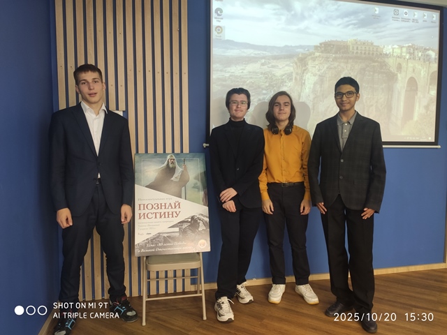 20 октября в ГБОУ СОШ №86 прошёл районный этап интеллектуальной игры «Познай Истину», организованный ИМЦ Петроградского района и Церковным благочинием Петроградского района. Темой районного этапа стало 80-летие Победы. В игре приняли участие Владимир Ятагама Гамаге (9А), Тимур Жумаев (9Б), Никита Глухов (10А) и Владимир Фокеев (10А). Наша команда заняла 3 место!