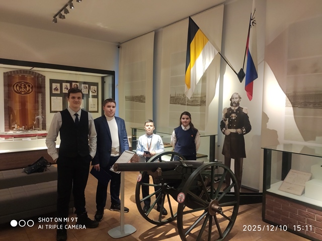 10 декабря учащиеся кружка ОДОД «Прогулки по Петербургу» Есения Бернацкая (5А), Иван Фролов (5А), Мирон Бернацкий (8А) и Даниил Болотов (8А) приняли участие в 3 этапе Регионального историко-краеведческого музейного конкурса «Во Славу Отечества» в Музее истории Обуховского завода.