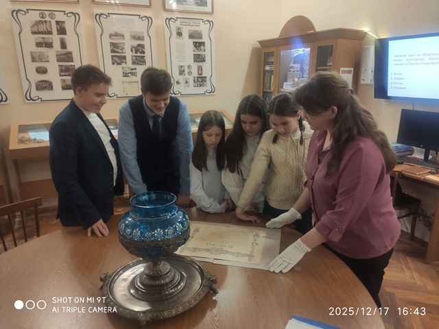 Учащиеся кружка ОДОД «Прогулки по Петербургу» продолжают участие в Фестивале школьных музеев Петроградского района. 17 декабря Есения Бернацкая (5А), Кира Филиппова (5А), Полина Широкова (5А), Мирон Бернацкий (8А) и Даниил Болотов (8А) посетили Музей ДДТ Петроградского района «Благотворительная деятельность семьи принца П.Г. Ольденбургского на Петроградской стороне» и «Музей 3-й Гвардейской дивизии народного ополчения — 44 Чудовской Краснознаменной стрелковой дивизии» в гимназии №70.