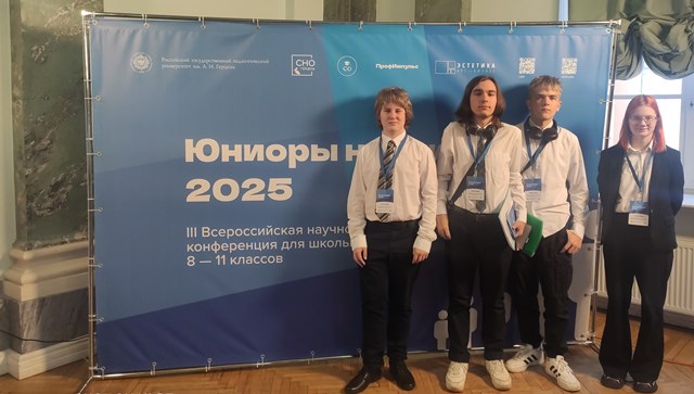 30 октября учащиеся кружка ОДОД «Прогулки по Петербургу» Вероника Чурсанова (8А), Святослав Строгалев (9А), Тимур Жумаев (9Б) и Максим Горбач (10А) приняли участие в III Всероссийской научно-практической конференции «Юниоры науки» в РГПУ им. А.И. Герцена.