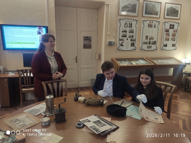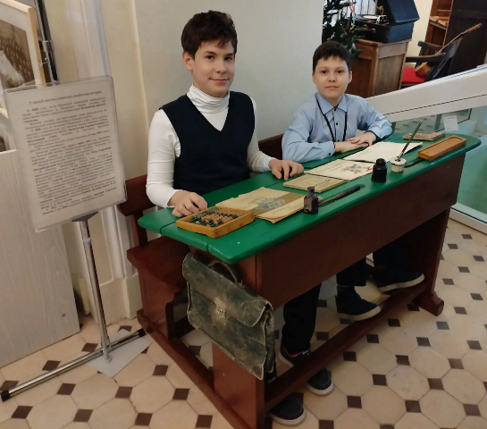 4 февраля учащиеся кружка ОДОД «Прогулки по Петербургу» Матвей Кутишенко и Иван Фролов в рамках Фестиваля школьных музеев Петроградского района посетили Музей истории школы №47 им. Д.С. Лихачева. Ребята осмотрели экспозицию музея и смогли посидеть за партой, за которой учился Д.С. Лихачёв.