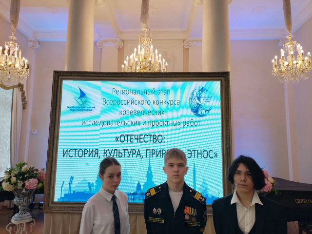 21 февраля в Аничковом дворце состоялся региональный этап Всероссийского конкурса краеведческих исследовательских и проектных работ «Отечество: история, культура, природа, этнос», в котором приняли участие наши учащиеся: Ярослав Белозёров и Анастасия Кавокина (7Б), Максим Горбач (10А).