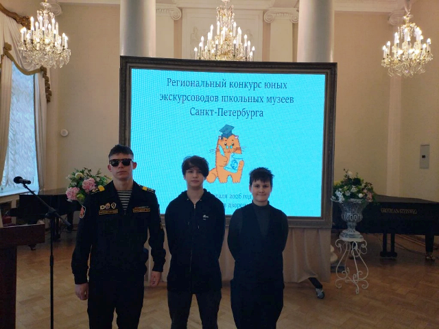 14 февраля в Аничковом дворце состоялся Региональный конкурс юных экскурсоводов школьных музеев, в котором приняли участие наши учащиеся: Георгий Шурухнов (5А), Арсений Быков (7Б), Михаил Квятковский (11А). Ребята представили свои экскурсии по музеям нашей школы.