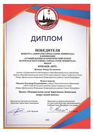 ГБОУ СОШ №84 им.П.А.Покрышева Петроградского района Санкт-Петербурга